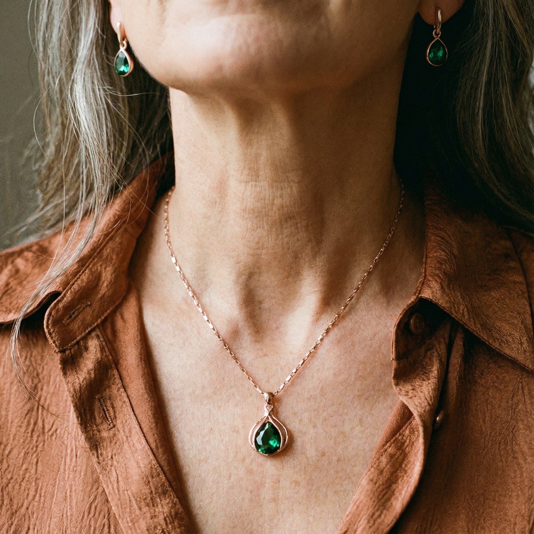 Necklace & Earring Set in Green Crystal and Gold